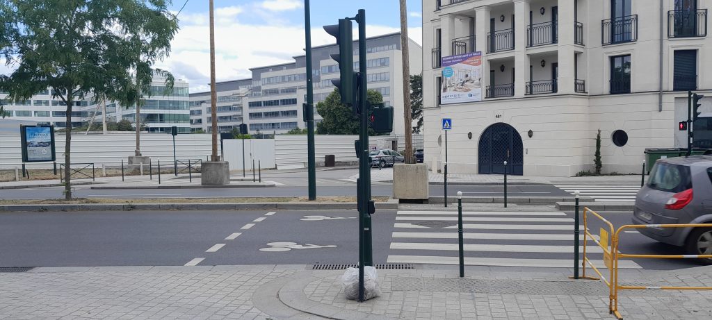 Bastien-Thiry was positioned alone at the eastern end of the ambush position 195 metres away from the north side ambush group. He was outside his parked Simca near a bus stop, (which is still there as you can see in the image below). He was in a location where he had a view of both the approaching convoy and the north side fire team as depicted in these 2025 images. I suspect Bastien-Thiry chose this spot because there is a slight kink in the road where the tram line deviates north. If he had positioned himself closer to the north side gun group his view east could have been compromised.